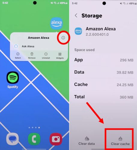 Then, you should also clear the temporary data (cache memory) of both apps to clear minor glitches. Here’s how to clear the Alexa app cache: