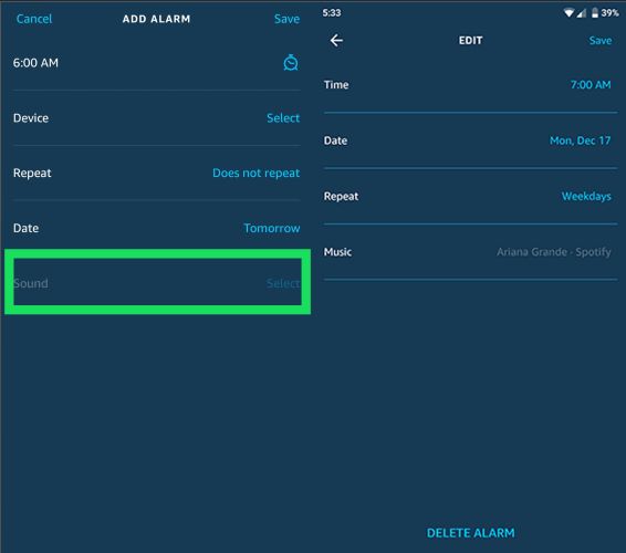 Once selected, the Echo speakers will play the Spotify song at the wake-time.